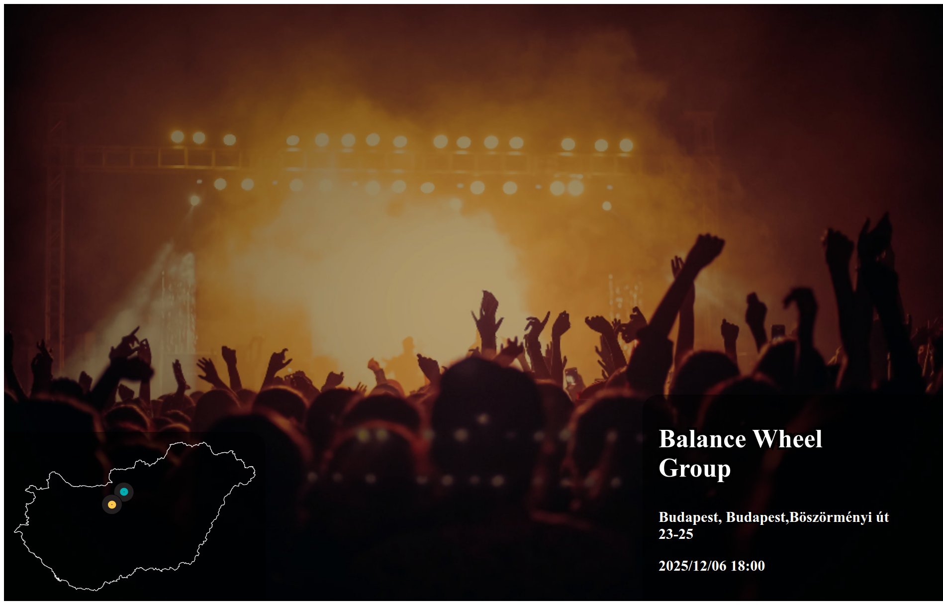 2025/11/21 18:00 kezdettel Balance Wheel Group fellépése Dunakeszi településen Farkas Ferenc AMI helyszínen kerül megrendezésre. Az esemény Nyilvános ingyenes rendezvény zárt helyiségben.