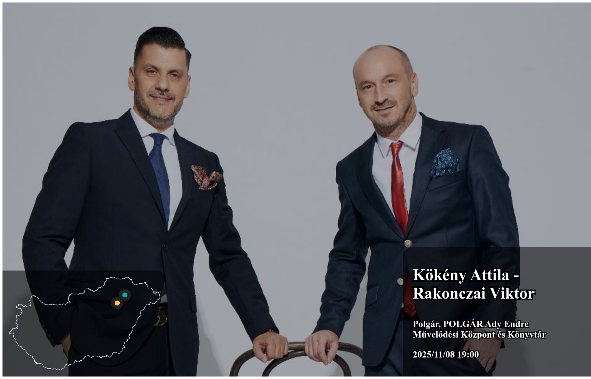 Kökény Attila - Rakonczai Viktor élő koncert Polgár, POLGÁR Ady Endre Művelődési Központ és Könyvtár