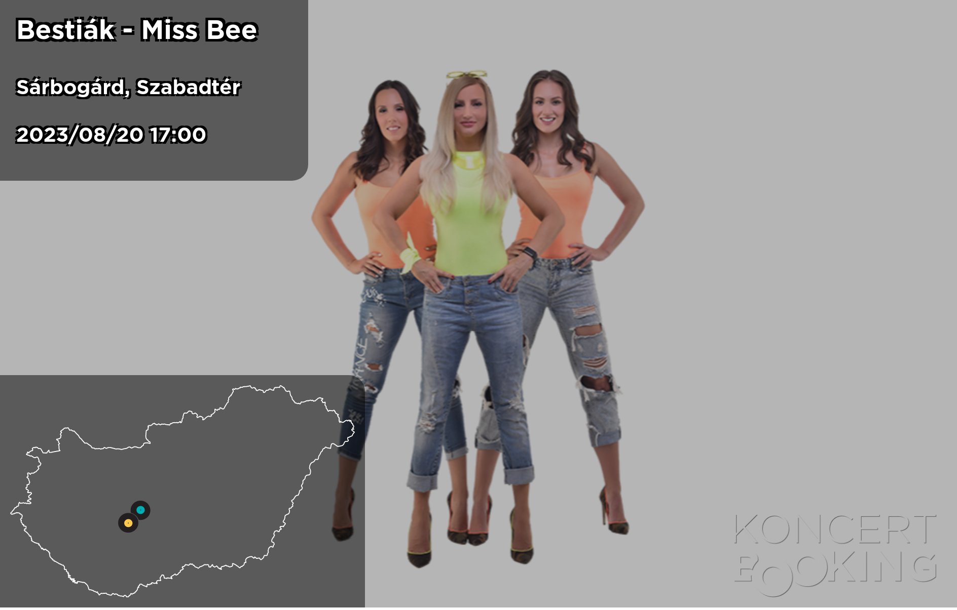 Bestiák - Miss Bee 2023/08/20 17:00 Sárbogárd Szabadtér fellépés - 2023.08.20. | Koncertbooking