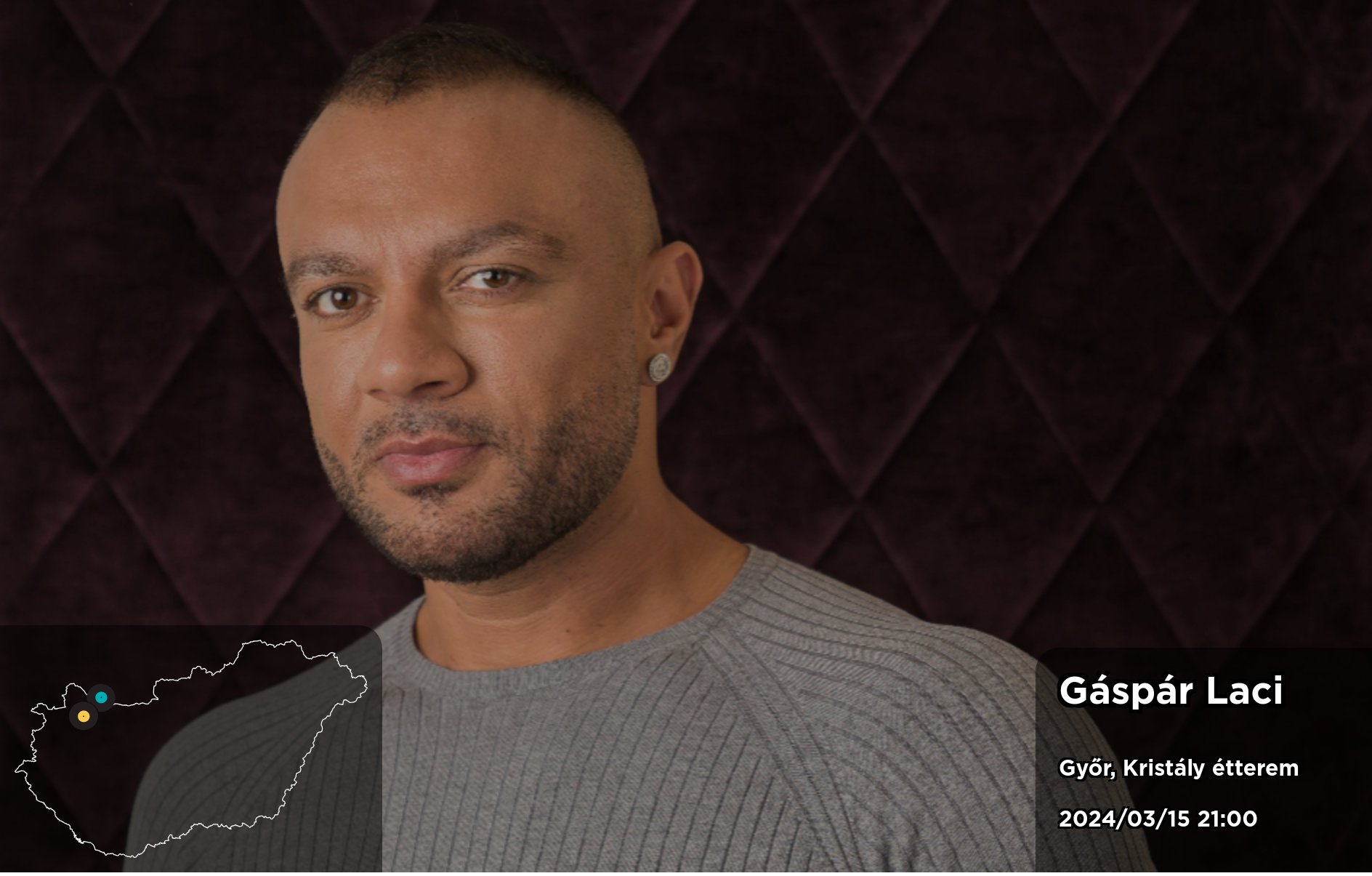 Gáspár Laci 2024/03/15 21:00 Győr Kristály étterem fellépés - 2024.03.15. | Koncertbooking