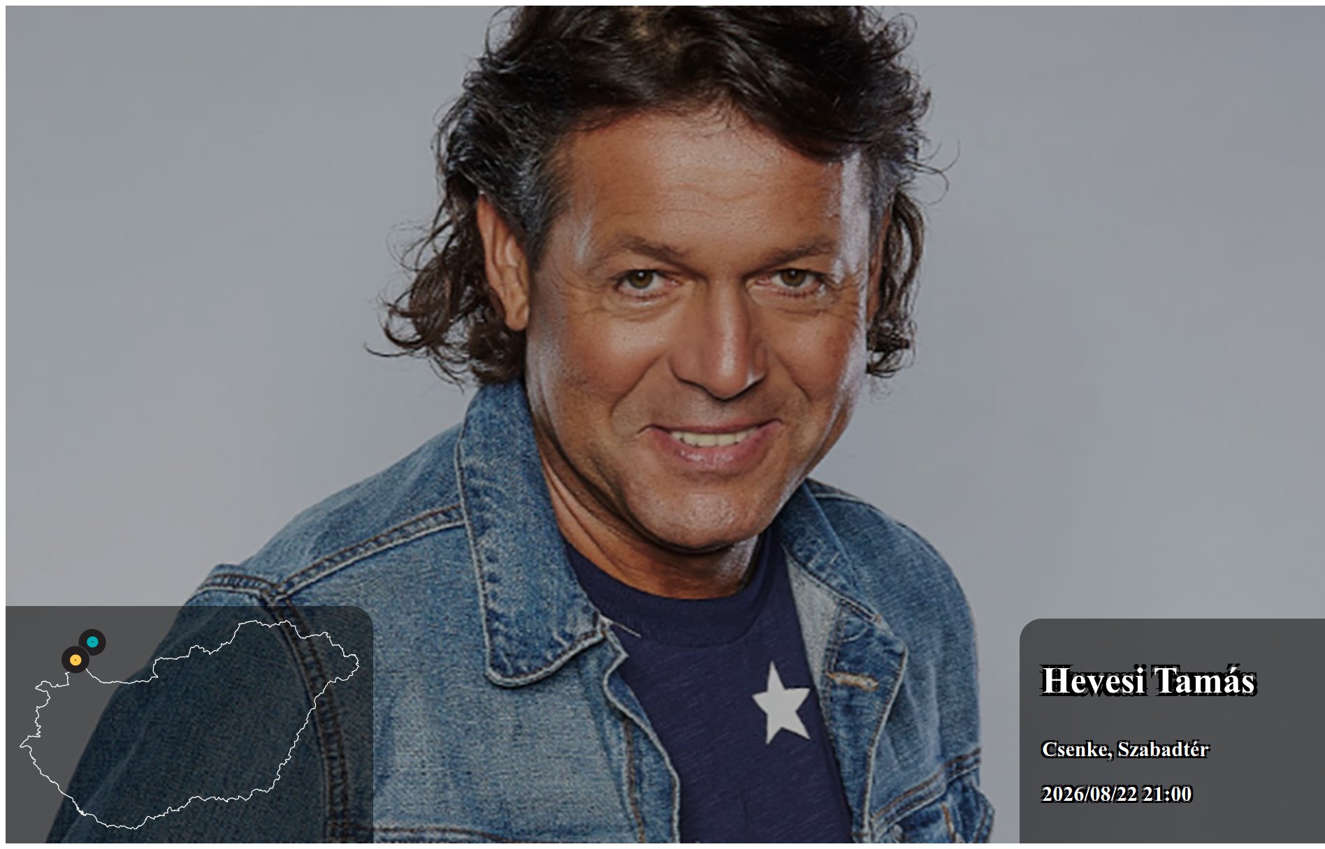 2022/08/14 19:00 kezdettel Hevesi Tamás fellépése Gúta településen II. Rákóczi Ferenc ált. iskola udvara -nagyszínpad helyszínen kerül megrendezésre. Az esemény Nyilvános belépőjegyes rendezvény szabadtéren.