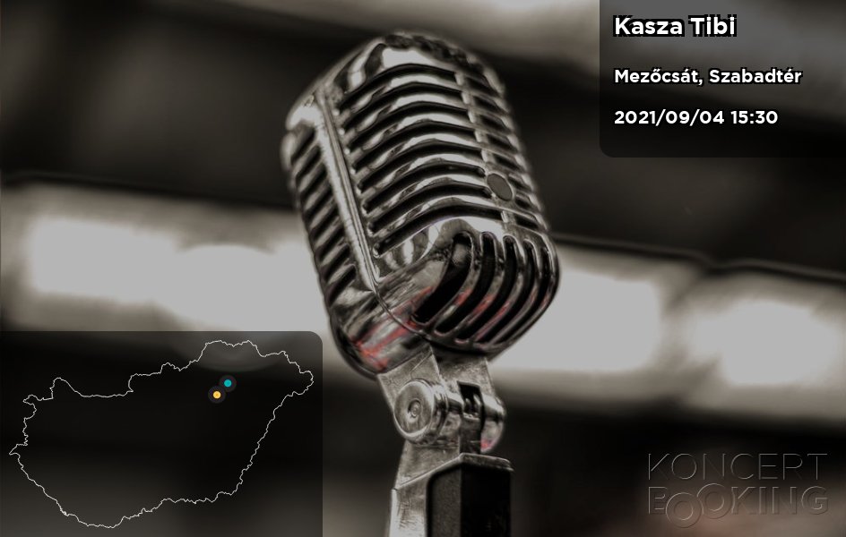 2021/09/04 15:30 kezdettel Kasza Tibi fellépése Mezőcsát településen Szabadtér helyszínen kerül megrendezésre. Az esemény Nyilvános ingyenes rendezvény szabadtéren.