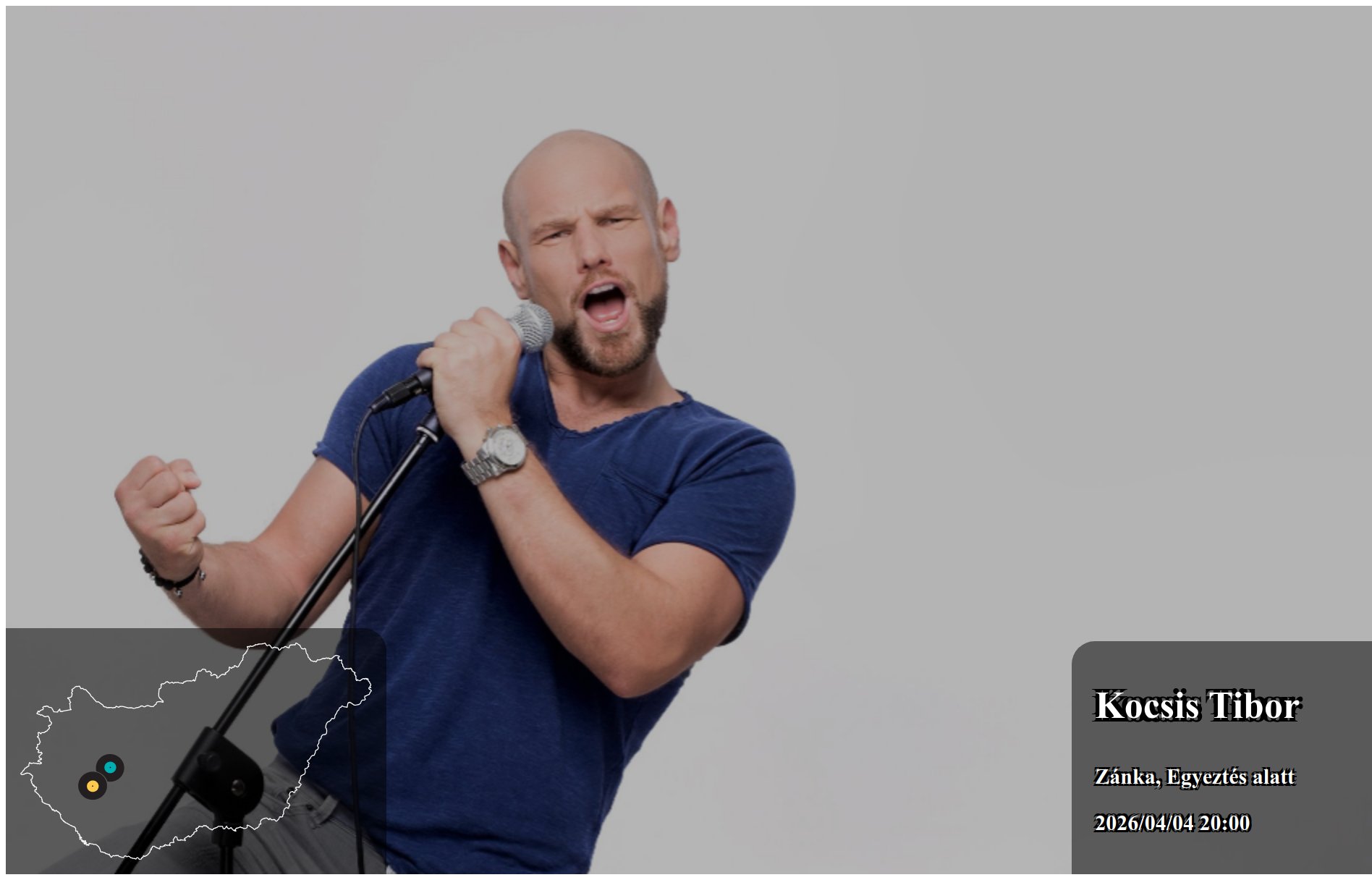 Kocsis Tibor 2026/03/21 20:00 Zánka Egyeztetés alatt fellépés - 2026.03.21. | Koncertbooking