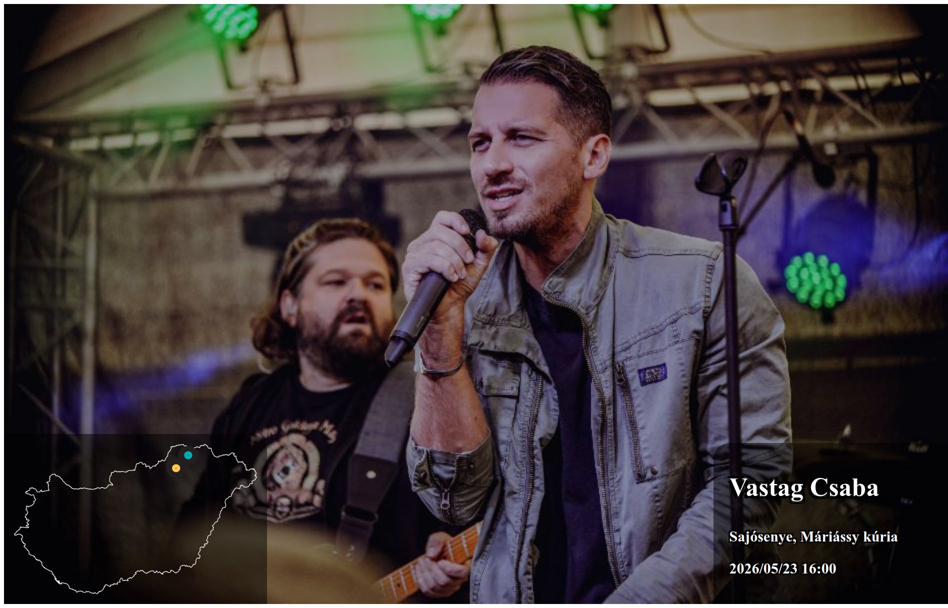 Éjfél utáni fellépések esetén a helyes keresési dátum az újonnan induló nap dátuma. Pl. Egy szombaton kezdődő klub fellépés éjfél utáni időpontja vasárnap 01:00 kor keresendő!