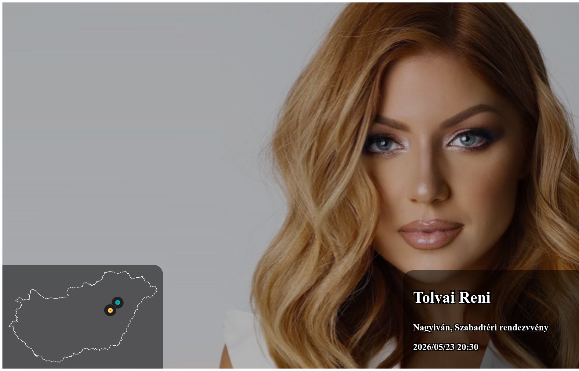 Az itt megjelenő eseményeket a produkció, vagy annak képviselője rögzítette. Az oldalon lévő információk valódiságáért a Koncertbooking.com ennek kapcsán felelősséget nem tud vállalni. Indulás előtt ellenőrizze az adott település vagy eseményhelyszín oldalán is a rendezvény paramétereit.