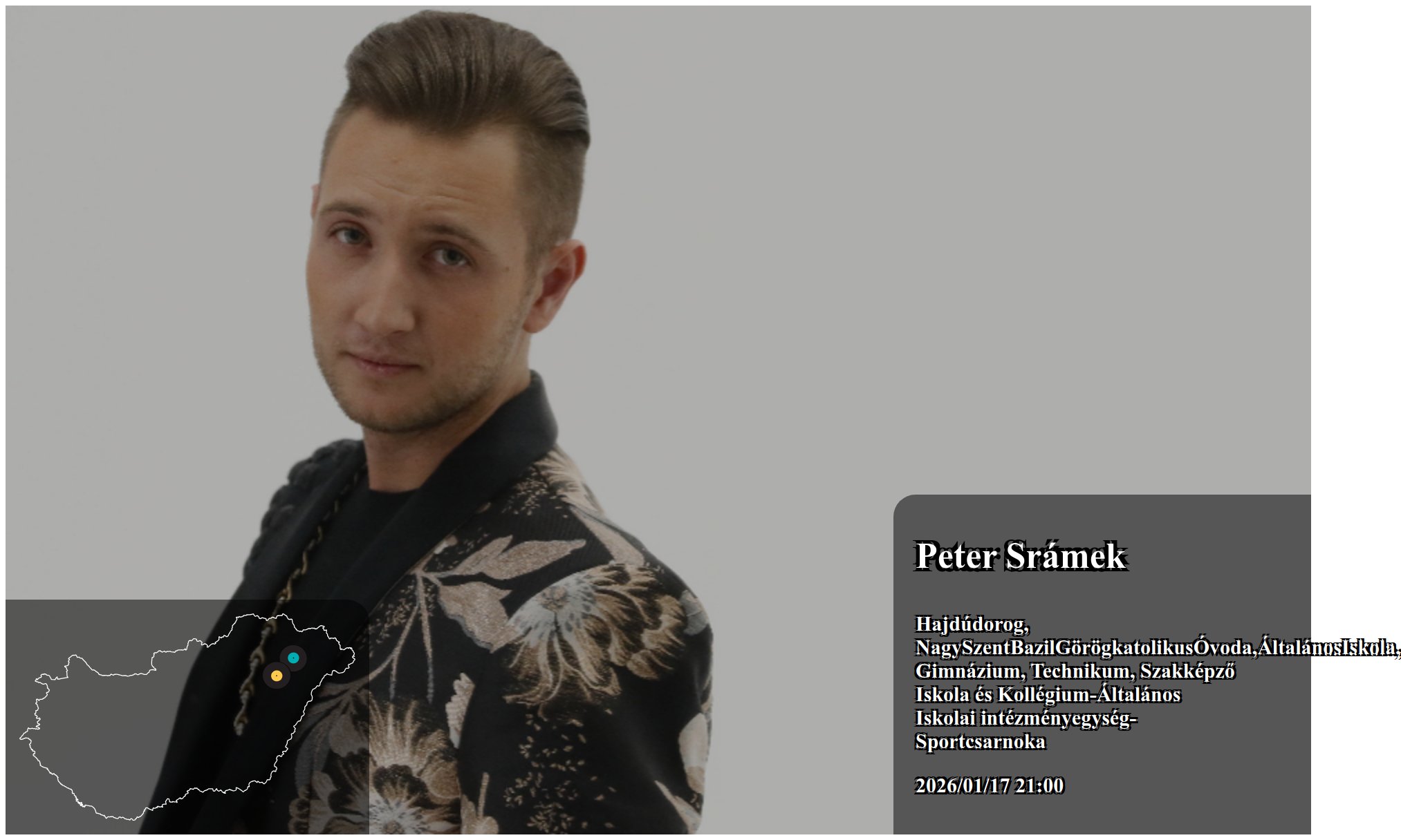 Peter Srámek fellépés Hajdúdorog, NagySzentBazilGörögkatolikusÓvoda,ÁltalánosIskola, Gimnázium, Technikum, Szakképző Iskola és Kollégium-Általános Iskolai intézményegység-Sportcsarnoka