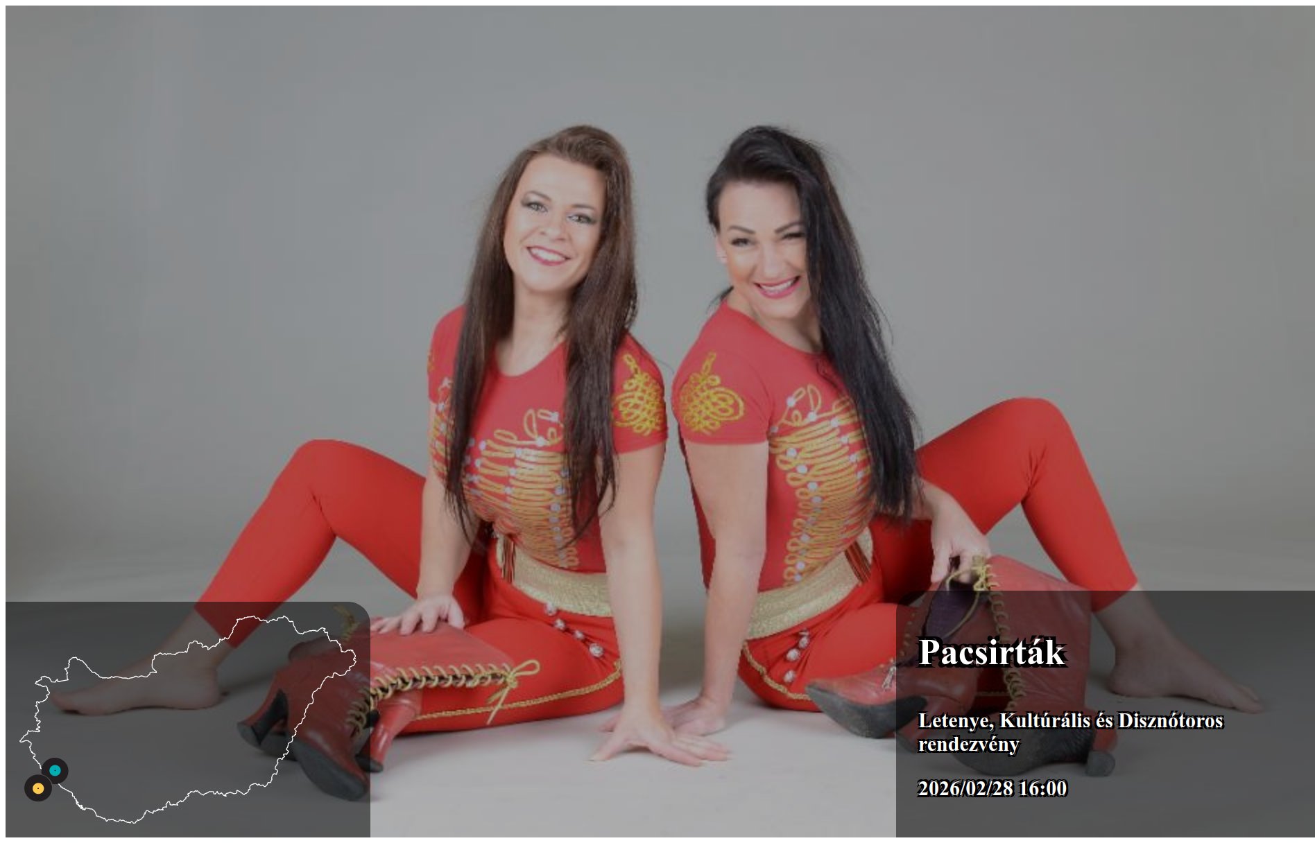 Az itt megjelenő eseményeket a produkció, vagy annak képviselője rögzítette. Az oldalon lévő információk valódiságáért a Koncertbooking.com ennek kapcsán felelősséget nem tud vállalni. Indulás előtt ellenőrizze az adott település vagy eseményhelyszín oldalán is a rendezvény paramétereit.
