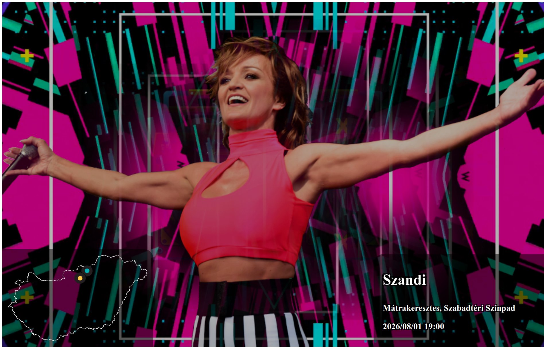 2026/08/01 17:00 kezdettel Szandi fellépése Kerekharaszt településen Szabadtér helyszínen kerül megrendezésre. Az esemény Nyilvános ingyenes rendezvény szabadtéren.